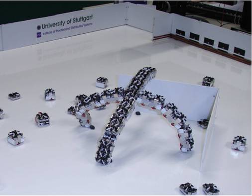 L’idée d’utiliser des collectifs de robots pour résoudre divers problèmes n’est pas une nouveauté, le concept a même le vent en poupe. A l’université de Lausanne, par exemple, l’équipe de Marco Dorigo se concentre sur les swarmanoids un « essaim » (swarm) d’entités mécaniques capables de s’aider mutuellement pour résoudre des problèmes tels que porter un objet, contourner un obstacle, etc.