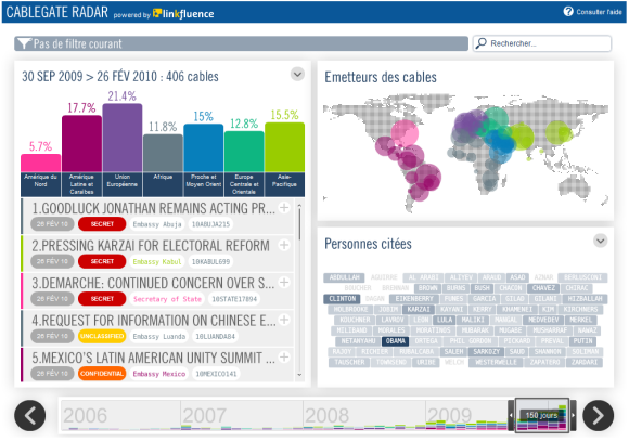 Image : la cartographie du Monde.fr qui permet de naviguer dans les mémo diplomatiques et son dossier dédié.