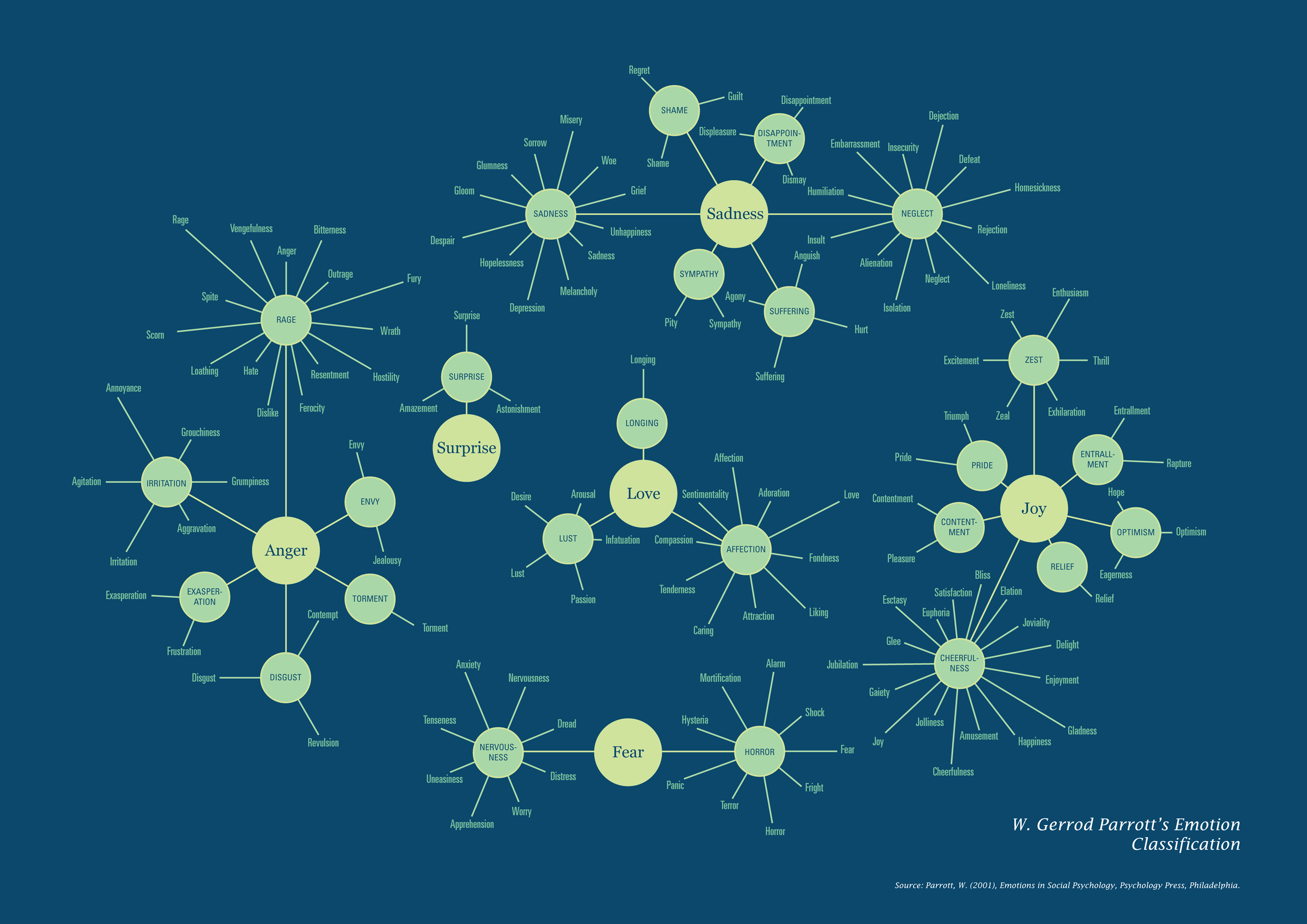Image : la classification de l’émotion du psychologue Gerrod Parrot agencée par le designer Pei-Ying Lin.