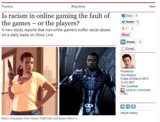Image : dans un article pour le Guardian, Tom Meltzer pose la question qui fâche : le racisme dans les jeux en ligne est-il la faute du jeu ou des joueurs ?