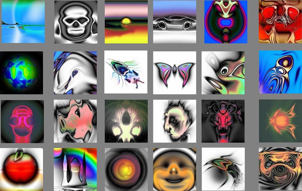 A partir de 2004, nous explique Taylor, une nouvelle génération de vie artificielle commence à se profiler. Le web est son milieu naturel. On trouve ainsi un certain nombre de sites permettant une évolution « par sélection naturelle » de figures ou d’images, comme c’est le cas avec Picbreeder. Chaque utilisateur se connectant au site est en mesure de « faire évoluer » une image auparavant travaillée par d’autres visiteurs. Petit à petit, l’image gagne en qualité esthétique, et bien que créée au départ à base d’algorithmes mathématiques, tend fréquemment à devenir de plus en plus « figurative ». Taylor cite également un système expérimental (.pdf) où les utilisateurs sont remplacés par des processus automatiques. Une fois créée et « mutée », la figure produite est envoyée dans Google Image pour repérer les images similaires. Celles qui donnent le plus de réponses et qui sont donc le plus proches de la perception humaine, sont sélectionnées pour engendrer la génération suivante… Le site endlessforms, dont nous avons déjà parlé, entre également dans cette catégorie de l’évolution par sélection.