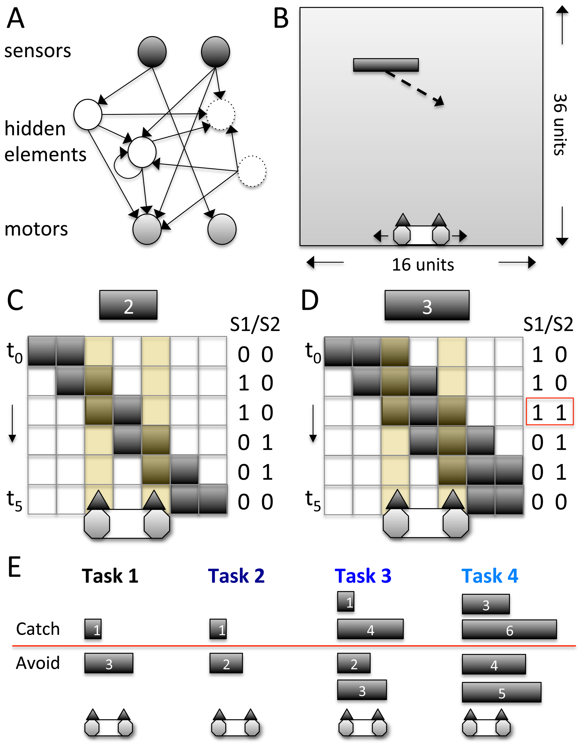 L’expérience rapportée par Plos consistait donc à mettre en scène des « agents intelligents » capables de capturer les blocs au fur et à mesure qu’ils tombaient sur l’écran et les placer le plus efficacement possible. Ces petites IA, ces « animats » comme on les appelle, ne disposaient en tout et pour tout que d’un réseau de 8 neurones pour effectuer leurs calculs : deux moteurs, deux capteurs, et quatre éléments internes effectuant la coordination et prenant les décisions. On le voit, des systèmes très simples, donc…