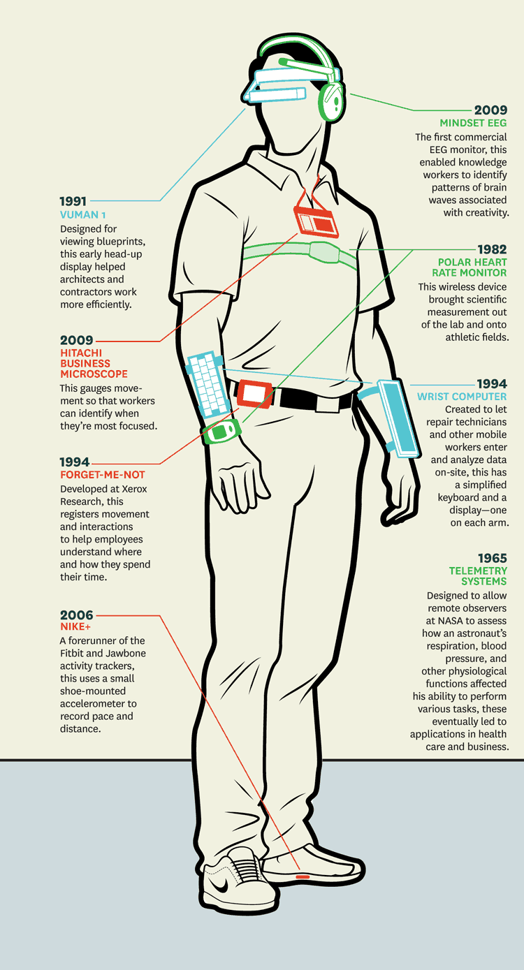 Image : infographie de l’historique des objets qui se portent au travail, via la Harvard Business Review.