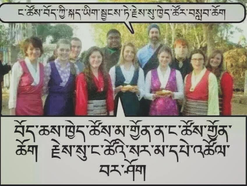 Peut-on s’attendre à une résurrection occidentale de la culture tibétaine, sous de nouvelles formes ? Dans un post de son blog, Ben Joffe mentionne ainsi un « mème » Facebook, une image représentant des occidentaux vêtus de costumes tibétains, accompagnés d’un commentaire (en tibétain) disant : « Nous apprendrons le tibétain parlé et écrit et ensuite nous vous l’enseignerons« , ainsi que la phrase suivante : « Si vous ne portez pas de vêtements tibétains nous les porterons (pour vous), puis vous viendrez dans nos pays à la recherche de patterns/designs. »