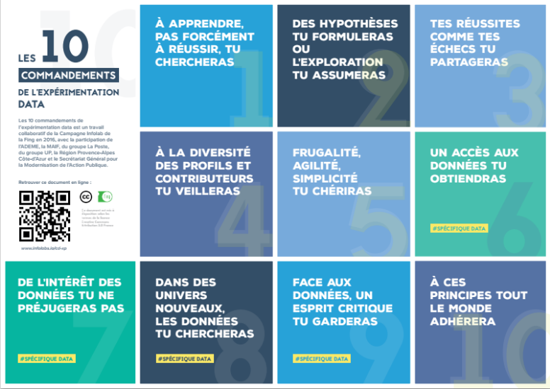 Le groupe Infolab a également rédigé les 10 commandements de l’expérimentation data, un ensemble de règles bienveillantes pour accompagner une logique d’expérimentation.