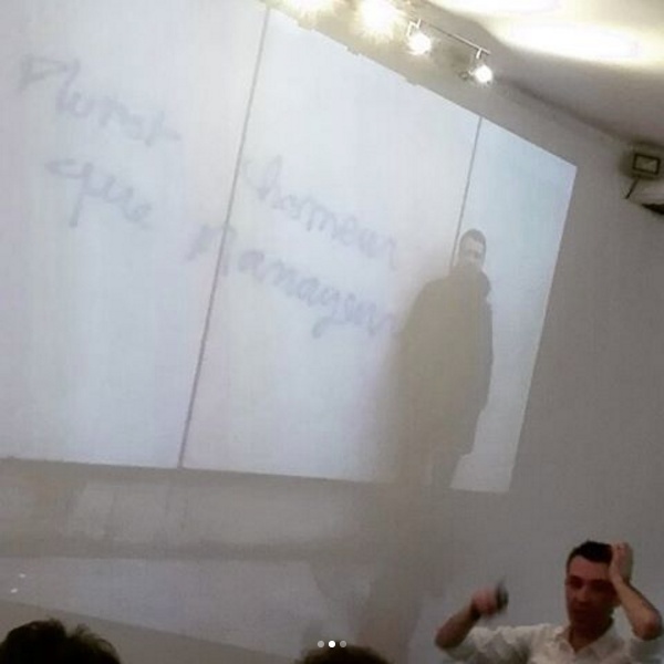 Dominique Pon montre un autre graffiti pour conclure sa présentation où il est inscrit : « Je suis fatiguer patron ». « La liberté se trouve dans le coeur de celui qui n’a cessé de la vouloir, de la rêver, l’a obtenue contre le crime » disait René Char. Le manager est là pour combattre le crime. « Alors seulement nous serons des hommes et des femmes libres et nos vies seront des oeuvres d’art, comme on se l’était promis enfants ».