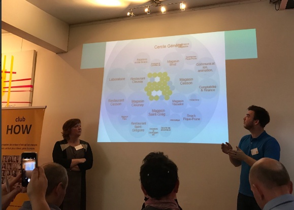 Dominique Pon est directeur général de la Clinique Pasteur à Toulouse. Difficile de rendre compte de son incroyable prestation, tant elle fait un pas de côté dans la forme comme dans le fond (je vous invite à voir par exemple une autre de ses prestations, assez proche de celle livrée au Club How, pour apprécier son ton décalé). Le contraste avec la présentation de l’holacratie est en tout cas patent, comme quoi il y a plusieurs manière d’être « libérant ».