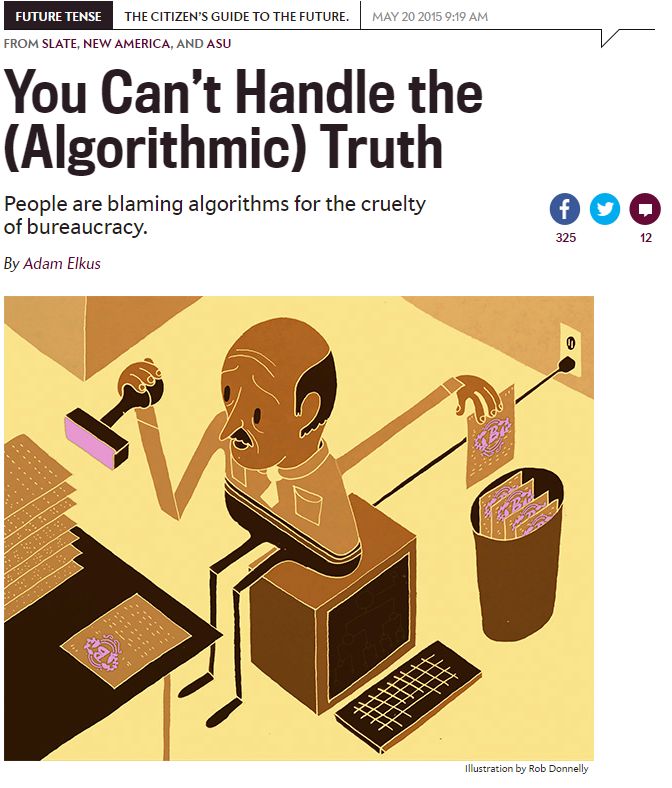 Image : Critique-t-on les algorithmes pour la cruauté de leur caractère bureaucratique, s’interrogeait déjà Slate en 2015.
