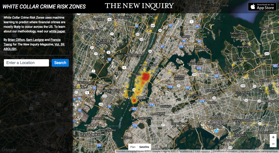 La troisième famille de critique repose sur l’inégalité sociale intrinsèque de nos systèmes. Les algorithmes prédictifs se concentrent presque exclusivement sur la justice pénale de masse, comme la comparution immédiate de masse. Les algorithmes pénaux s’intéressent uniquement aux pauvres, aucun ne s’intéresse à la délinquance financière ou à la délinquance fiscale par exemple, comme s’en était moqué le designer Sam Lavigne en lançant un système de police prédictive des zones de délinquance en col blanc. Ils entérinent une justice à deux vitesses : une pour les classes supérieures gérées par les humains, une automatisée pour les plus pauvres.