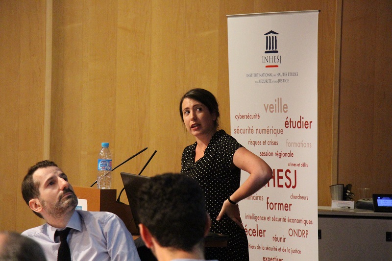 Image : Angèle Christin et David Forest, sur la scène de l’amphithéâtre de l’Ecole militaire lors du séminaire de l’INHESJ.