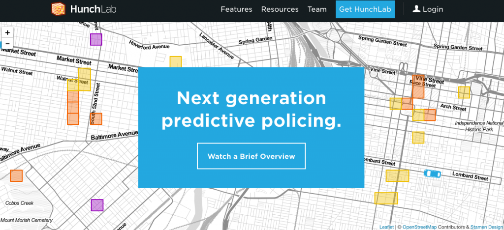 Jeremy Heffner est data scientist chez Azavea, une « B Corp », une entreprise privée spécialisée dans l’analyse géographique et qui agit pour l’intérêt général. Il est le responsable d’un des principaux projets d’Azavea, Hunchlab (@hunchlab), un outil de police prédictive, concurrent direct de Predpol qui ne s’intéresse pas seulement à la prédiction du crime, mais à comment aider la police à répondre à ces prédictions afin d’apporter non seulement une mesure de la criminalité, mais surtout un effet et évaluer l’impact de ce retour. Le projet ne se définit d’ailleurs pas comme un projet de prédiction du crime, mais comme « un logiciel de gestion de patrouille de police proactif ».