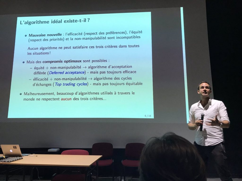 À l’heure où APB cristallise à lui seul toutes les difficultés de l’éducation nationale, comme s’il en était à la fois la cause et l’unique responsable, nous avons voulu initier une discussion sur ses capacités comme sur ses limites. Pour cela, outre des séances d’ateliers et de discussions, nous avions convié plusieurs intervenants à nous expliquer APB en ses forces et limites. Tentons donc de comprendre avec eux, APB, modèle emblématique des inquiétudes légitimes et des incompréhensions manifestes autour des boites noires algorithmiques et de leurs effets !