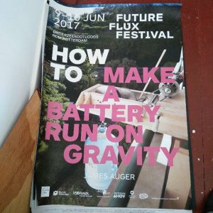 On entend notamment James Auger (@crapfutures), professeur associé au M-ITI à Madère, adepte d’un design critique, qui utilise les objets pour interroger notre rapport à la technologie (voir notamment la conférence qu’il donna à Lift en 2009). Auger évoque longuement sa « pile à gravité » (vidéo), un moyen pour stocker l’énergie intermittente d’une manière totalement naturelle, via une batterie qui utilise l’énergie cinétique pour se charger et se décharger quand on en a besoin. Une pile écologique inspirée par la topologie même de Madère, ses falaises, où James Auger vit. Un projet dont l’objectif principal est de fournir des fins similaires à la batterie de Tesla, mais selon des moyens différents : d’abord en se démarquant des impacts environnementaux des batteries lithium-ion de Tesla, ensuite et surtout, en imaginant une batterie qui permette aux gens de reprendre le contrôle.