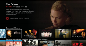 Il y a le Personalized Video Ranker (PVR, pour classement vidéo personnalisé) qui commande pour chaque profil un classement personnalisé selon les catégories… et la popularité des contenus (qui, elle, n’est pas personnalisée). Un autre algorithme qui détermine la recommandation et la page d’accueil du service est le Top-N Video Ranker, qui vise à fournir les meilleures recommandations pour chaque profil en se concentrant uniquement les vidéos les mieux classées, valorisant une « tête » de catalogue, c’est-à-dire d’une certaine manière les plus vues. Se combine aussi un autre algorithme de « tendances récentes », car les tendances à court terme sont un autre prédicteur puissant du visionnage. C’est un algorithme qui permet de faire entrer de la considération sociale dans les recommandations, liée à l’actualité par exemple. Un autre algorithme est le Continue watching qui consiste à recommander du contenu selon ce qui a déjà été visionné en prenant en compte le temps écoulé depuis le visionnage d’un épisode ou le point d’abandon des séries… L’algorithme « de similitude vidéo à vidéo », lui, active une recommandation du type : « parce que vous avez regardé » qui fait une recommandation depuis une des vidéos visionnées par un utilisateur. Celui-ci est un algorithme non personnalisé qui pointe vers des vidéos semblables calculées pour chaque vidéo du catalogue. Un autre algorithme encore assure la diversité de la page d’accueil et de la recommandation.