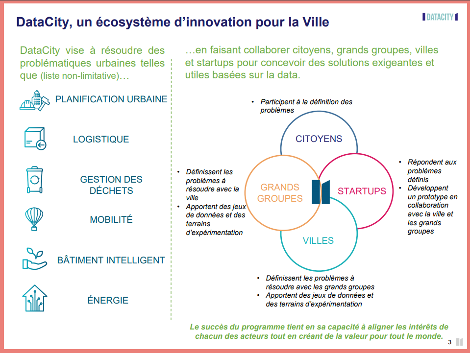 Image : Présentation synthétique du programme DataCity par le Numa, tiré de la présentation de Clémence Fisher.