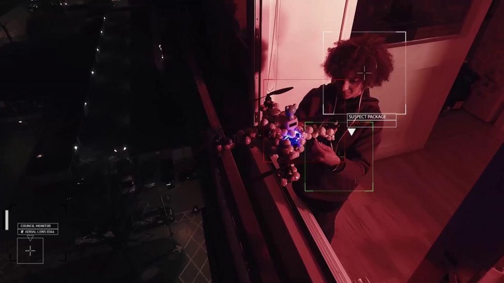 Images tirées des films de Liam Young présentant la ville du futur vue à travers les capteurs Lidar puis une jeune femme personnalisant son drone, via Vice.