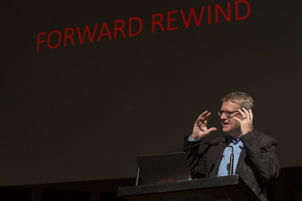Il paraît que le téléphone serait la première et la dernière chose que nous touchons dans la journée, explique le professeur en rappelant combien ce constat souligne tout ce à quoi nous renonçons. La technologie nous rend à la fois inhumains et super-humains. Elle modifie nos corps et nos cerveaux, comme le pointait McLuhan. Si nous sommes façonnés par l’extérieur, la technologie désormais fait partie de nous, tant et si bien qu’on ne sait plus si on ajoute toujours plus de la technologie à nous-mêmes ou si nous nous ajoutons à la technologie. La technologie nous transforme si profondément que nous avons de la peine à l’appréhender. C’est à peine si nous remarquons encore qui fait le café chaque matin chez chacun d’entre nous. Ce n’est pas tant un humain qu’une machine. Pour ne pas l’interroger, nous nous anesthésions, d’une technologie l’autre. Chaque nouvelle technologie est interrogée depuis la précédente. La télévision permet de nous interroger sur le cinéma. Le web sur la télévision. Les réseaux sociaux sur le web, etc. « On regarde toujours le monde depuis un rétroviseur. » Et quand on regarde vers le futur, c’est toujours depuis les lunettes du passé.