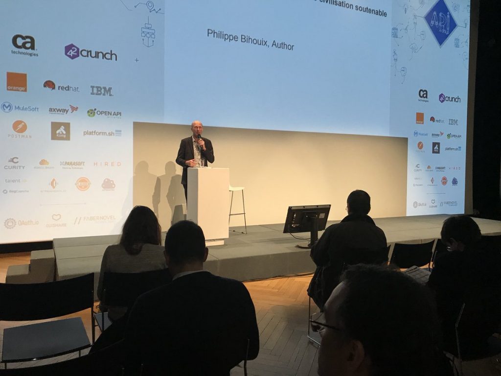 Image : Philippe Bihouix sur la scène des APIdays, photographié par OuiShare France.