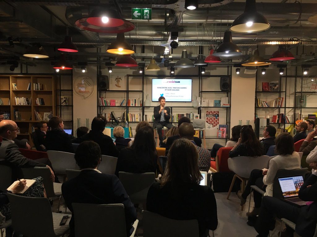 Dans la salle du Maif Social Club où Harris était invité la veille à intervenir en petit comité, il a commencé par montrer une vidéo, où des adolescents témoignent de leurs difficultés à gérer les sollicitations de leurs smartphones et de leurs services sociaux. Une vidéo où les adolescents soulignent combien ils sont conscients de l’accroche attentionnelle dont ils sont à la fois les cibles et les victimes, mis en parallèle avec un discours décomplexé des entrepreneurs de la technologie via des citations où ceux-ci sont montrés dans leur plus simple objectif, à l’exemple du patron de Netflix, Reed Hastings, avouant que son service est « en concurrence avec le sommeil ». Une vidéo qui souligne, à l’image de l’ONG qui l’a produite, Common Sense Media, que la question du « bien-être numérique » est devenue une question de société et un enjeu d’intérêt général.