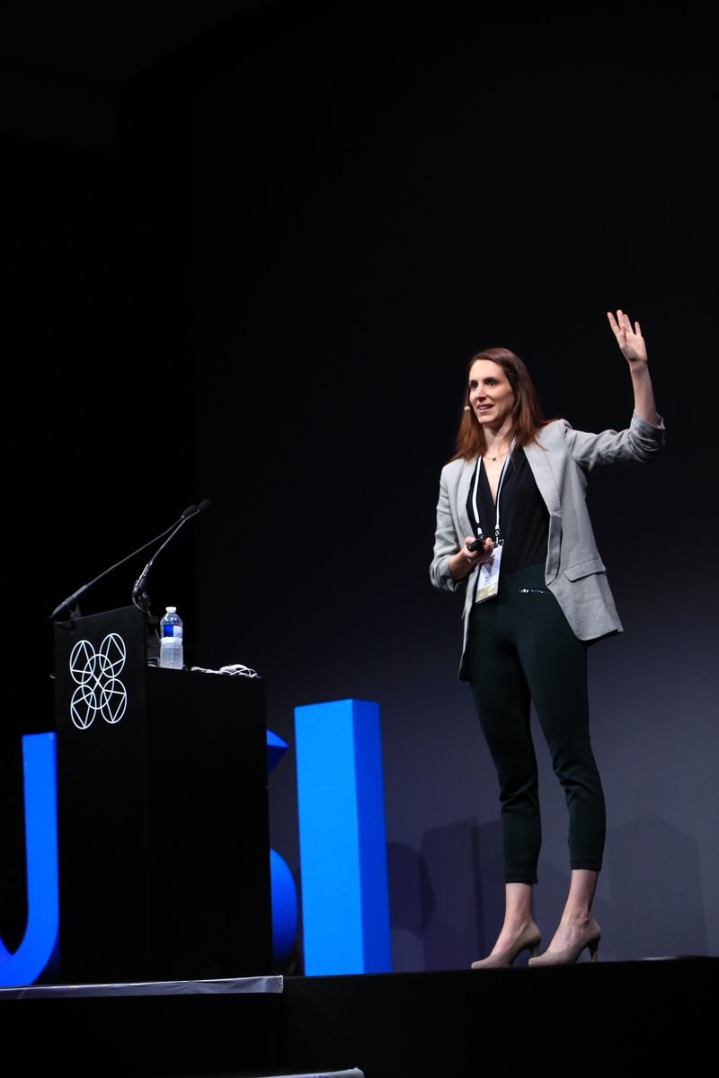 Image : Sandra Matz sur la scène des conférences USI, via USIevents.