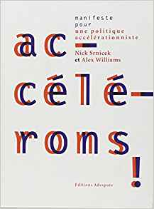 Le philosophe Nick Srnicek (@n_srnck) est l’auteur avec Alex Williams (@lemonbloodycola) du célèbre manifeste accélérationniste (2013, publié également sous forme de livre en 2017), ainsi que du livre Accélérer le futur : Post-travail & post-capitalisme (2017). Dans leur manifeste et leur livre, les théoriciens de l’accélération souhaitent l’avènement d’un post-capitalisme boosté par les technologies, comme ils l’expliquaient dans un entretien pour Libération en 2014. Prenant à contre-courant la technocritique de gauche, pour eux, l’automatisation totale semblait la voie pour mener l’humain à l’émancipation, permettant de nous libérer du travail. Malgré leur succès critique, et les nombreuses controverses que leur position a déclenchées, le manifeste accélérationniste n’a pas réinventé la gauche. Cela n’a pas empêché les deux essayistes de continuer leur travail critique. Alex Williams s’apprête à publier Hegemony Now (2019) avec le politiste Jeremy Gilbert (@jemgilbert). Nick Srnicek prépare After Work : What’s Left and Who Cares ? (2019) avec Helen Hester…