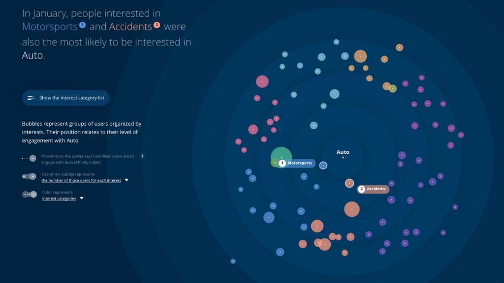 Caroline Goulard évoque un autre projet de son agence, réalisé avec Outbrain, l’une des grandes agences spécialisées dans la recommandation de contenus sponsorisés – souvent très critiquée du fait des suggestions automatisées que ces plateformes produisent. Le principe de ce type d’agence de placements de contenus fonctionne complètement algorithmiquement : les marques payent pour avoir des emplacements publicitaires sous des contenus qui sont déterminés automatiquement par les outils de Outbrain afin de maximiser le taux de clic. Le problème pour Outbrain, c’est que le fonctionnement de leurs algorithmes est complexe. Ce sont des boîtes noires et il est difficile pour les équipes marketing d’Outbrain qui travaillent avec les marques d’expliquer à leurs clients leur fonctionnement et où vont se placer leurs publicités. Les équipes d’Outbrain avaient donc besoin d’un outil pour permettre à leurs clients de comprendre comment le placement automatique se réalise et d’où viennent les gens qui cliquent sur leurs contenus. Dataveyes a donc réalisé un outil permettant de comprendre par exemple que les clients qui cliquent sur des contenus sponsorisés sur la santé sont plutôt des profils en train de lire des articles sur le fitness ou la prise de poids et qu’il y a très peu de chance qu’ils soient en train de lire un article sur le jeu ou l’environnement. « L’enjeu, n’est pas d’expliquer l’algorithme, mais de fournir une application pour voir ce que cet algorithme produit, de le rendre plus explicable et de permettre aux clients d’Outbrain de comprendre quels types de profil ils touchent ». Un exemple qui montre combien l’enjeu de l’explicabilité n’est absolument pas réductible au code de l’algorithme et combien les dispositifs permettant de jouer avec l’information font preuve d’une réelle efficacité pour permettre d’en comprendre le fonctionnement.