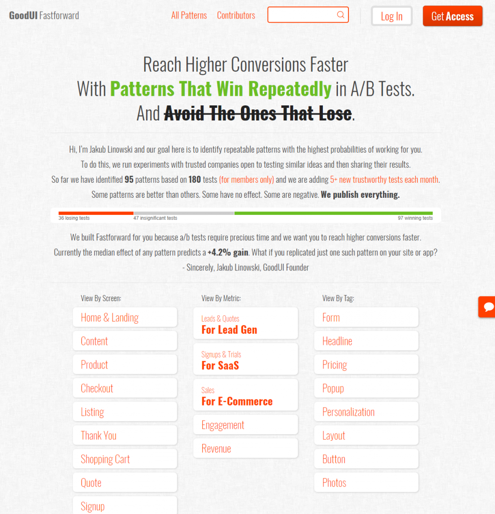 Image : GoodUI sur les enseignements généralisables de l’A/B testing.