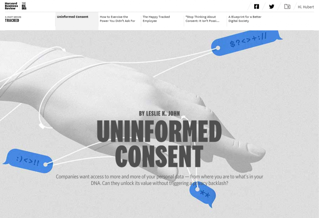 Dans un autre article pour la Harvard Business Review, la chercheuse Leslie K. John (@lesliekjohn) dresse le même constat : l’équilibre entre les avantages qu’en tirent les entreprises et les utilisateurs n’est pas équitable.