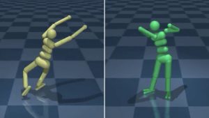 C’est ce qu’a montré, au même meeting de Louisiane, Peter Henderson, chercheur à l’université McGill, avec des systèmes d’IA apprenant par la classique méthode des essais et erreurs. Il a montré une petite figure humanoïde virtuelle, qui devait petit à petit apprendre à se déplacer dans son environnement. Dans certains tests, le « robot » apprenait à courir, dans d’autres il s’écrasait lamentablement sur le sol.