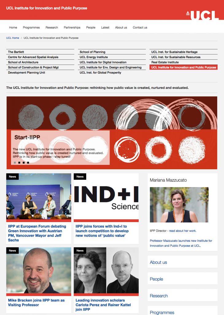 La spécialiste de l’innovation publique, Mariana Mazzucatato (Wikipédia, @MazzucatoM), auteure de l’Etat entrepreneurial, a lancé fin juin un Institut pour l’innovation et l’intérêt public (Institute for Innovation and Public Purpose, IIPP, @IIPP_UCL accueillit à l’University College de Londres) pour repenser la manière dont est « créée, nourrie et évaluée la valeur publique ». L’action du secteur public ne peut se limiter à corriger les défaillances du marché, mais doit les façonner pour aider secteur public, privé et tiers secteur à atteindre les objectifs sociétaux qui s’annoncent. L’enjeu du think tank est de poser la question de la production de l’intérêt général : comment ces secteurs peuvent-ils travailler de manière collaborative pour produire des biens et une valeur publics ? Comment mieux comprendre l’intérêt général et produire des objectifs d’intérêts général ? Quelles structures sont les plus à mêmes de produit de la valeur publique ? Les nouvelles technologies peuvent-elles avoir un but « public » ? Comment la valeur produite collectivement peut-elle être mieux partagée de manière inclusive ?…